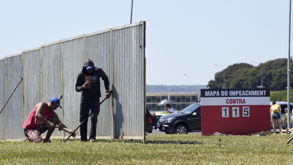 La explanada de los ministerios de Brasilia se llenaba de vallas este domingo para separar a adversarios y partidarios de la destitución de la presidenta Dilma Rousseff cuando la Cámara de Diputados vote al respecto el próximo fin de semana.