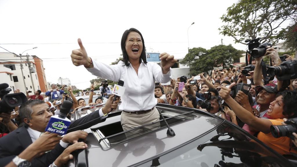 La hija mayor del encarcelado expresidente Alberto Fujimori (1990-2000) se halla a las puertas, por segunda vez en cinco años, de ganar unas elecciones que podrían convertirla en la primera mujer en gobernar Perú, de la mano de su partido, el derechista Fuerza Popular. Con el 82,6% de los votos escrutados, Fujimori, de 40 años, lideraba con 39,55% contra 22,11% para Kuczynski. Relegada en un tercer lugar quedó la izquierdista Verónika Mendoza, con 18,27%, un resultado ya difícil de remontar.
