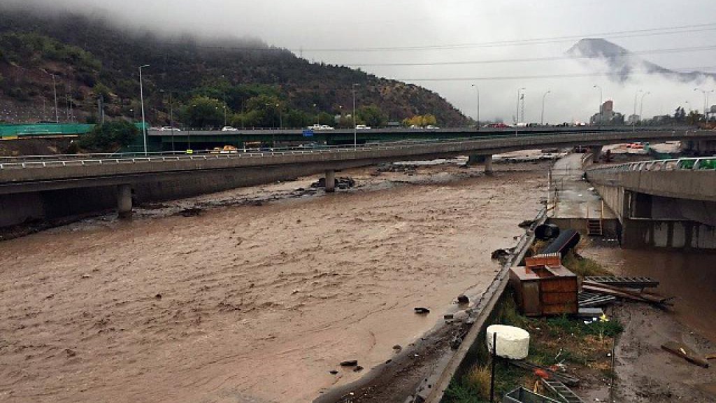 Las fuertes lluvias causaron además dos muertos, 10 desaparecidos, más de 370 damnificados y medio millar de personas aisladas en la zona central de Chile, mientras que los colegios permanecieron cerrados, según un último informe de la Oficina Nacional de Emergencia (Onemi). En tanto, decenas de calles del exclusivo barrio Providencia, en el oeste de Santiago, amanecieron inundadas tras el desborde del río Mapocho, que anegó edificios, casas y locales comerciales, y provocó el cierre de autopistas y avenidas.