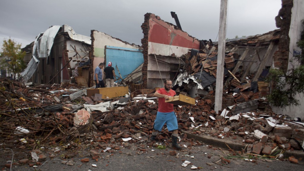 El viernes, un tornado arrasó la ciudad de Dolores (265 kilómetros al oeste de Montevideo) y mató a cinco personas, además de dejar unos 200 heridos de diversa consideración. Otras tres personas murieron arrastradas por las aguas en diferentes localidades del país.
