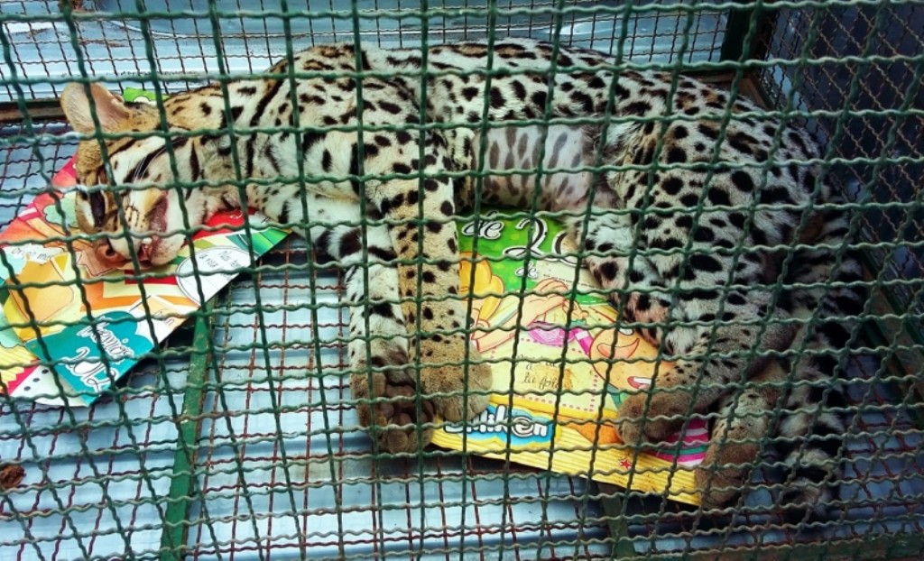 Un ejemplar de ocelote fue encontrado herido en ruta que atraviesa el Parque Nacional Calilegua, y luego trasladado al Centro de Atención de la Fauna Autóctona de Jujuy (CAFAJU) para su recuperación.