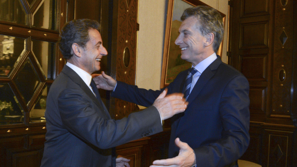 El presidente Mauricio Macri recibió el jueves en la Casa Rosada al exmandatario francés Nicolás Sarkozy, quien el viernes recorrerá la ex Escuela de Mecánica de la Armada (ESMA) y almorzará con el ministro de Hacienda y Finanzas, Alfonso Prat Gay.