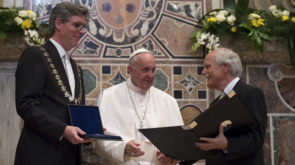 Francisco recibió el premio Carlomagno, el importante galardón europeo, que se otorga desde 1950, en la imponente Sala Regia del palacio apostólico. Asistieron a la ceremonia la mayoría de los líderes de la Unión Europea (UE), entre ellos la jefa del gobierno alemán, Angela Merkel; el presidente de la Comisión Europea, Jean-Claude Juncker; el titular del Parlamento europeo, Schulz; y el jefe del Consejo de la UE, Donald Tusk; así como el rey de España, Felipe VI.