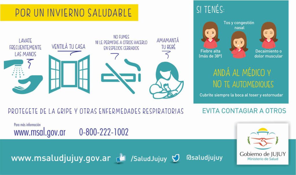 El titular de la cartera sanitaria de Jujuy, Mario Fiad instó a la población con mayor riesgo de enfermarse a dirigirse a los más de 400 puntos que tiene la red de salud pública donde pueden acceder a la inmunización antigripal, además llamó a las personas fuera de esta situación de vulnerabilidad a extremar las medidas de prevención complementarias.