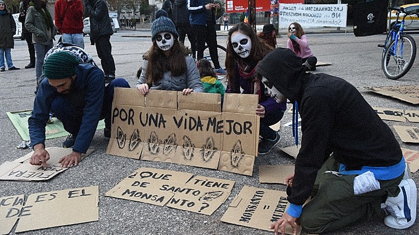 Con las caras pintadas de calaveras o pancartas que decían “Monsanto = muerte”, marcharon unas 300 personas en la capital uruguaya contra la multinacional y en defensa del “agua y la tierra”. La marcha fue parte de una movilización internacional contra la multinacional estadounidense.