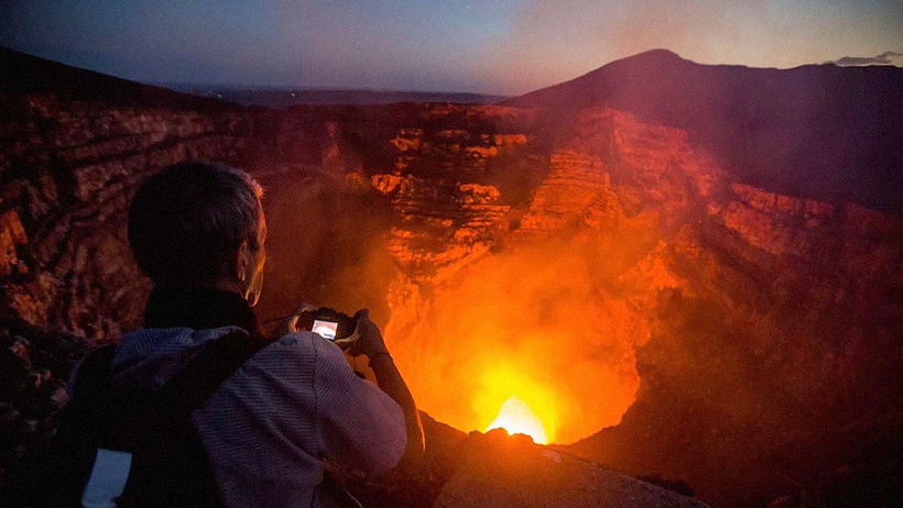 Desafiando el intenso olor a azufre, los turistas se acercan para asomarse al pozo de lava que bulle muy cerca de la superficie en el cráter del volcán Masaya, cuya furia trataron de aplacar los indígenas en el pasado sacrificando doncellas y niños. “Es algo extraordinario, único en el mundo”, dijo Noheli Pravia, una turista francesa mientras observaba el turbulento magma que se aprecia desde el borde del cráter a menos de 100 metros de profundidad.
