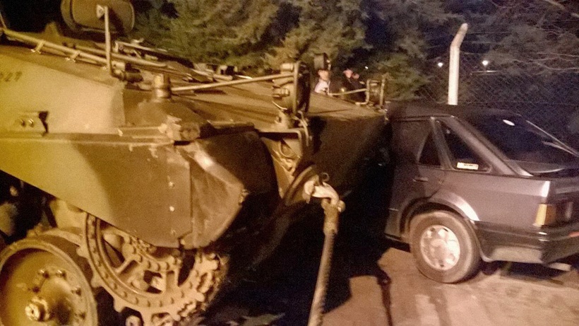 Según el conductor del auto y esposo de la mujer herida, Sergio Stecklalin, cuando vio venir los vehículos militares decidió estacionar a un costado del asfalto para darles paso, pero el tanque, que remolcaba otra pieza bélica, no pudo evitar chocarlo.
