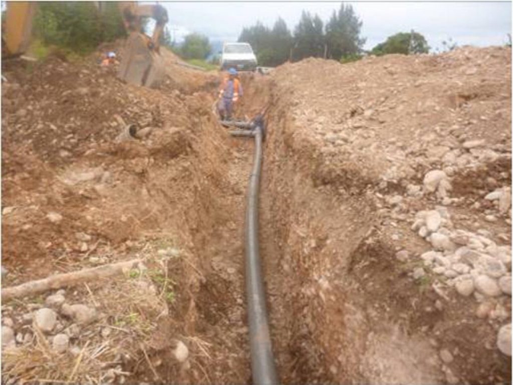 La obra de infraestructura de agua consistió en el reemplazo de 500 metros de longitud del ducto, el cual se encontraba colocado a 5 metros de profundidad lo que dificultó considerablemente su ejecución; el conducto al encontrarse a dicha profundidad presentaba varias roturas y fugas lo que hacía imposible detectar las mismas y por ende su reparación.