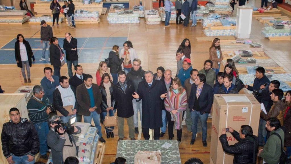 En el Estadio Olímpico Néstor Kirchner entregaron colchones, muebles, cocinas, heladeras y frazadas que completan la última donación prevista del estado provincial.