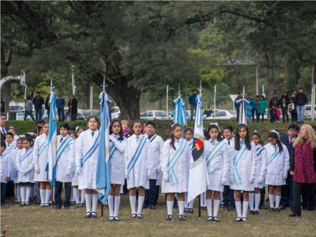 Luego la ceremonial oficial se realizó en predio del RIM 20, donde el gobernador Morales tomó promesa de fidelidad a la Bandera Nacional y Bandera Nacional de la Libertad Civil a los alumnos de 4º grado de las Escuelas General Manuel Belgrano y Legado Belgraniano de San Salvador de Jujuy.