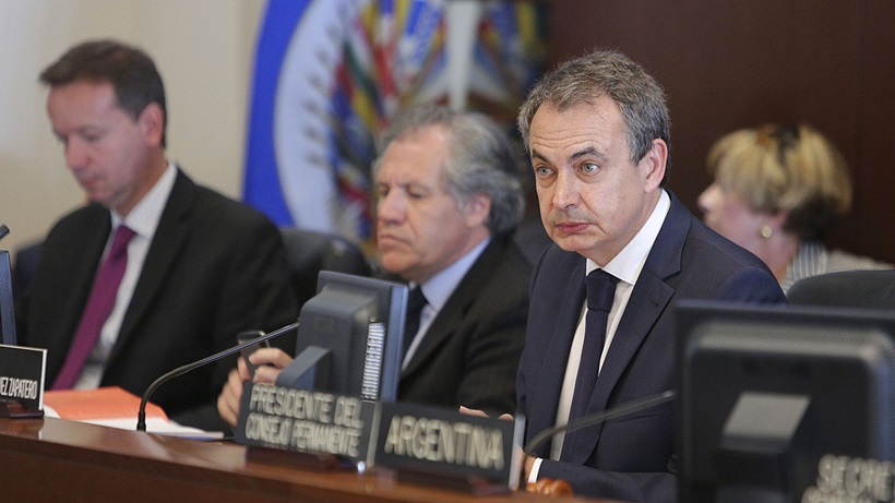 El expresidente del gobierno español José Luis Rodríguez Zapatero tomó la palabra en la primera sesión el martes, llamando a los países del continente a apoyar una mediación que encabeza junto con otros dos exgobernantes. Zapatero defendió la “plena imparcialidad” de su búsqueda por concretar un diálogo entre el gobierno de Maduro y las fuerzas opositoras que controlan el Parlamento e impulsan un referendo revocatorio en su contra.