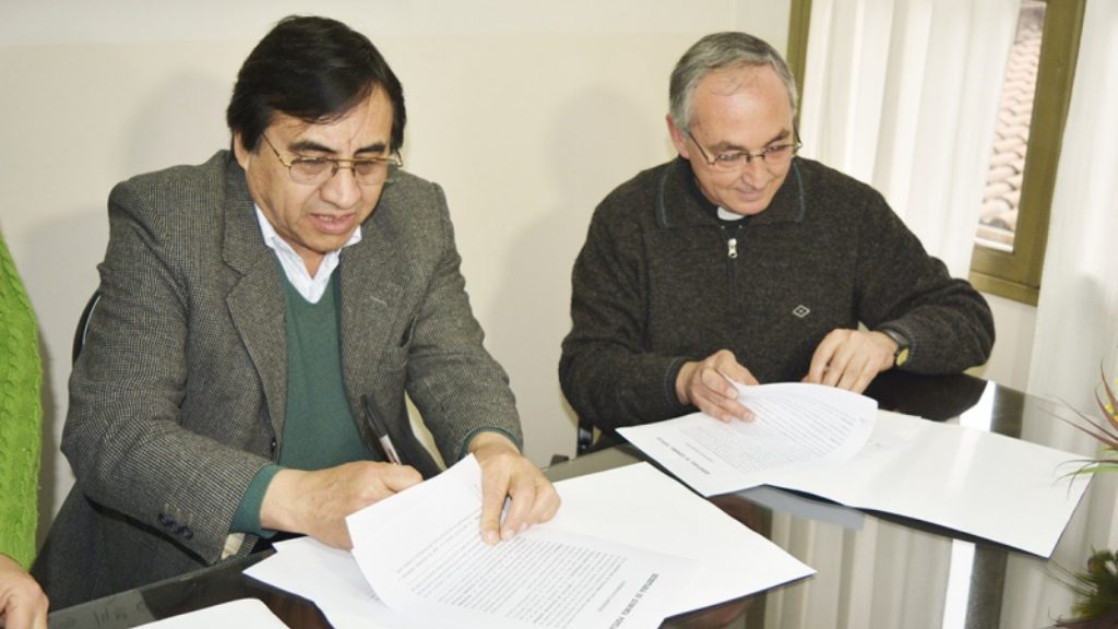 El secretario de Economía Popular, Rubén Daza, y el representante legal del Instituto de Educación Superior Populorum Progressio, padre Antonio Hernández, firmaron un convenio de colaboración, a partir del cual las prácticas profesionalizantes de la carrera de Trabajo Social, podrán desarrollarse en el ámbito de dicha secretaría.