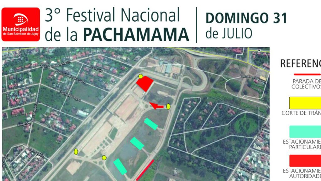 Desde la Dirección General de Tránsito y Transporte de la Municipalidad, informaron a la población en general y a los conductores en particular, que en razón de la realización del Tercer Festival Nacional de la Pachamama, el cual se llevará a cabo en el predio de la Ciudad Cultural, de Barrio Alto Padilla de esta ciudad, el domingo 31 de agosto, se procederá a prohibir el estacionamiento vehicular sobre calle Curupaití en toda su extensión, sobre calle colectora de Ruta 9 al frente del predio y en las calles internas del mismo, por donde circularán las unidades de transporte urbano de pasajeros.