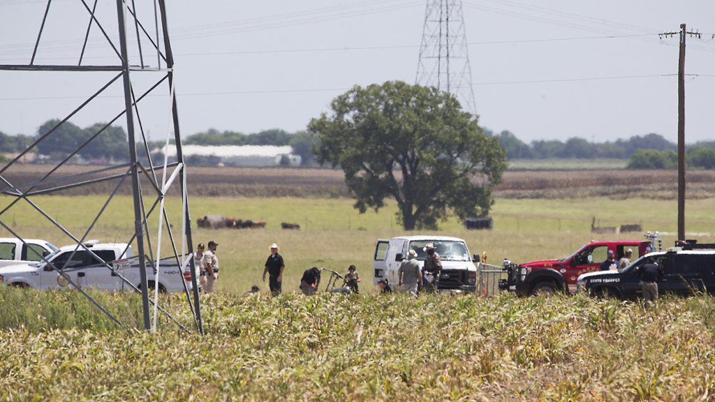 El sábado, en Texas, la televisión mostraba imágenes de vehículos de la policía y de emergencias estacionados bajo una línea de alta tensión que corre a lo largo de un campo.
