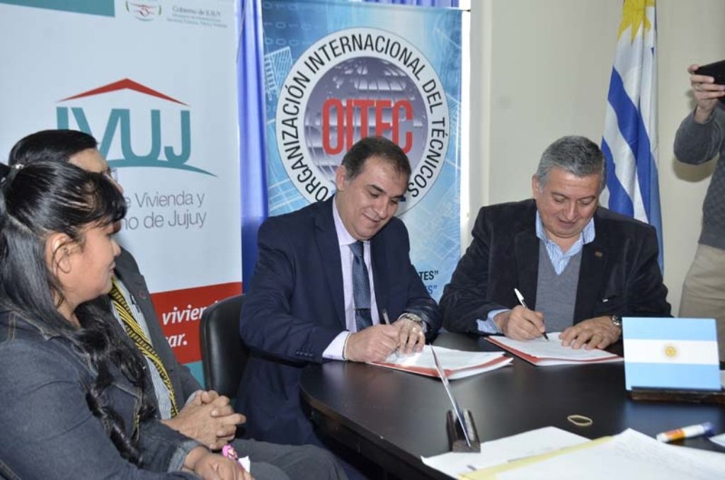 El presidente del Instituto de Vivienda y Urbanismo de Jujuy (IVUJ), Walter Morales, firmó un convenio de colaboración mutua con el titular del Colegio de Técnicos de la Provincia, Miguel Morales, a fin de trabajar conjuntamente para fortalecer el proceso de control de las obras que realiza el organismo, promoviendo la transparencia y la correcta concreción de los trabajos.