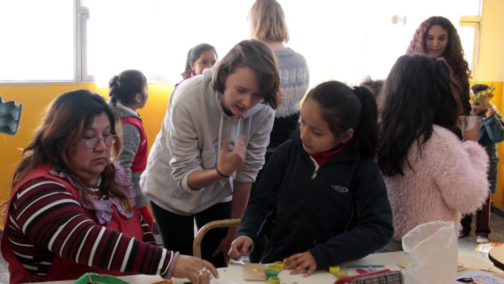 Las talleristas Clemence Paillieux y Perrine Honorè, provenientes del Instituto de Diseño Gráfico de Francia, disertaron junto a los más pequeños sobre el reciclado para la confección de disfraces y máscaras.