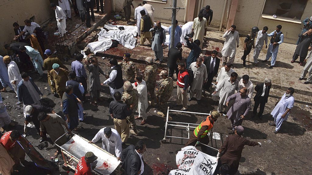 Muchos abogados y periodistas habían acudido al hospital después del asesinato del presidente del colegio de abogados de Baluchistán, Bilal Anwar Kasi, abatido por dos individuos armados cuando salía de su domicilio.