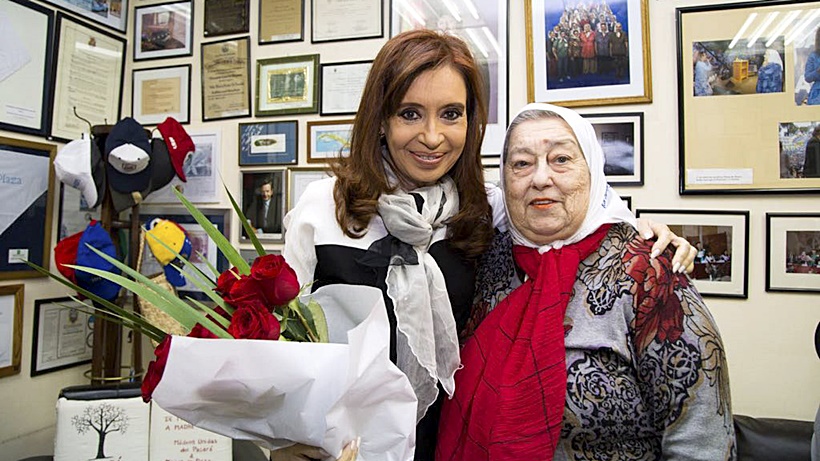 La expresidenta Cristina Fernández de Kirchner visitó el jueves a la titular de Madres de Plaza de Mayo, Hebe de Bonafini, y a otras integrantes de la entidad, a quienes felicitó por la realización de la ronda número 2.000 alrededor de la Pirámide de Mayo.