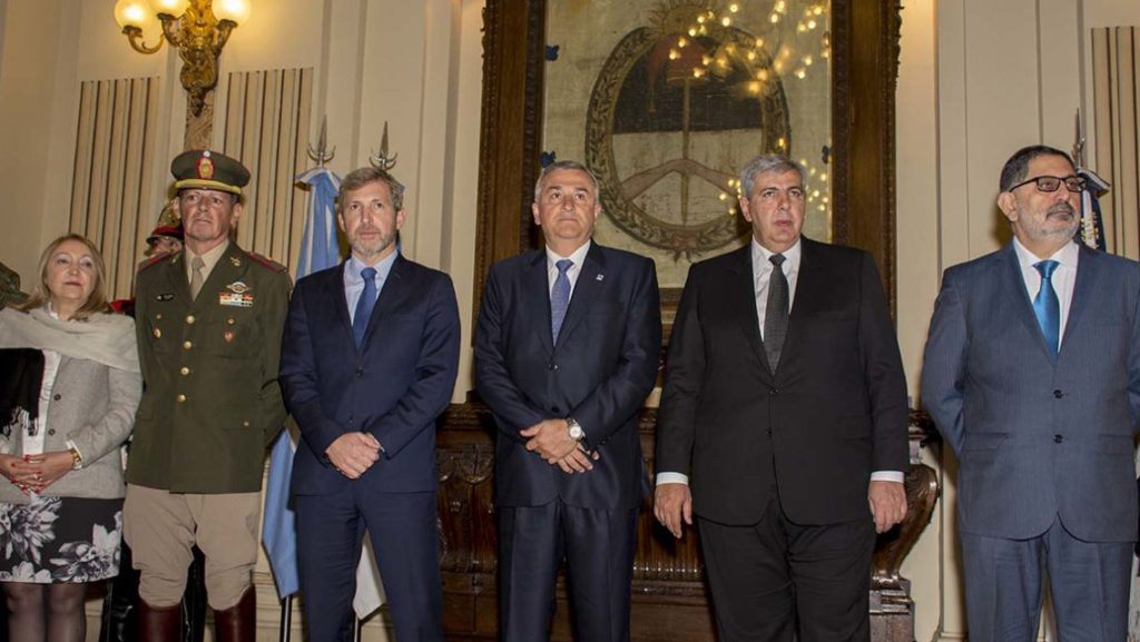 La jornada inició en el Salón de la Bandera con el saludo protocolar del gobernador Morales a funcionarios e invitados. De la tradicional ceremonia fueron parte el ministro Rogelio Frigerio; el vice gobernador, Carlos Haquím; el intendente de San Salvador, Raúl Jorge y el Comandante de la Vta. Brigada de Montaña del Ejército Argentino, Juan Manuel Pulleiro.