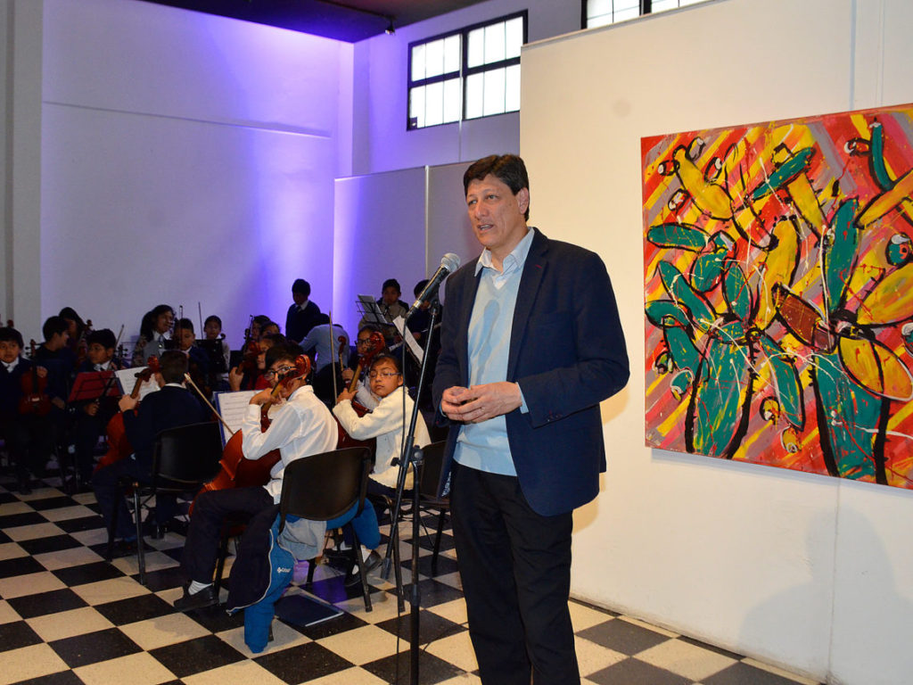 Durante la inauguración de la muestra, los alumnos de la orquesta de formación temprana de la Escuela Superior de Música a cargo de Luis Escalera, realizaron un repertorio con temas referidos a la temática de las obras.