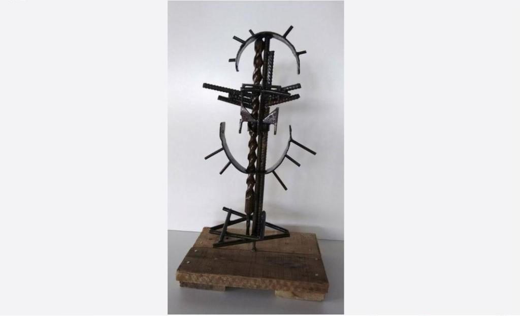 Se trata de una pieza de un poco menos de un metro de alto y, como toda obra del artista argentino de 46 años, está confeccionada con materiales de descarte ferroviario y metales.