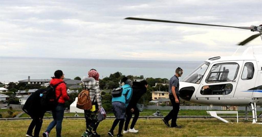 Varios helicópteros, entre ellos cuatro de la Fuerza Aérea neozelandesa, llevaron ayuda y comenzaron a evacuar personas en Kaikoura, dando prioridad a los ancianos, niños, mujeres embarazadas y a las personas con problemas de salud o vulnerables.