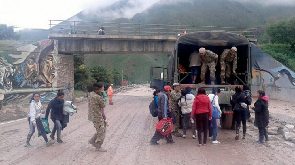 Están en la zona además militares de la Compañía Cazadores de Montaña 5 colaborando con los damnificados por el alud que afectó a distintas localidades y a raíz del cual hay miles de personas evacuadas. Para la asistencia en esas localidades, las Fuerzas Armadas pusieron a disposición 70 efectivos, un vehículo Ranger, un helicóptero Bell 212, cuatro unimog y tres aguateros, además de equipos de andinismo.