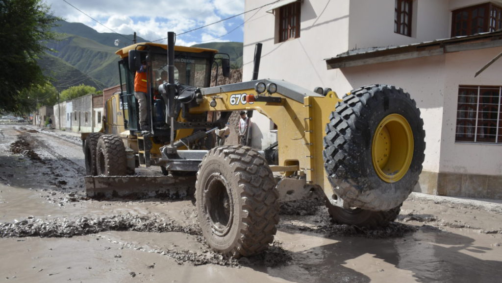 Maquinarias de vialidad y de la provincia, continúan trabajando efectivamente dentro de las calles de Volcán, realizando limpieza en las casas menos afectadas con la intención de drenar el barro y luego proceder con la zona más afectada del pueblo.