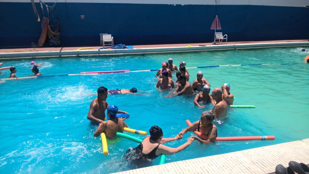 Con la participación de cerca de 40 personas se realiza a pleno la Colonia de Vacaciones para Adultos Mayores “Jugando en el agua”, organizada conjuntamente por la Secretaría de Deportes y Recreación, dependiente del Ministerio de Desarrollo Humano y la organización Acuática Natación Jujuy.
