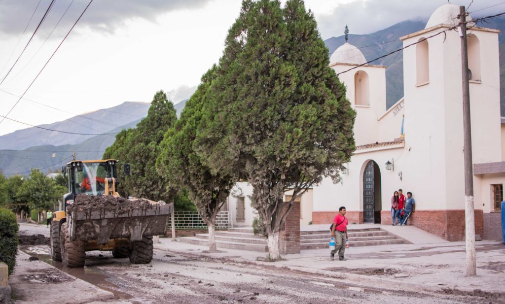 Continua la extracción de barro en la calles de Volcán y en la ruta en la zona de Bárcena, se mantiene la limpieza de banquinas; habilitando la Ruta 9, la cual se encuentra transitable, con precaución entre Bárcena y Tumbaya, debido a la presencia de personal.