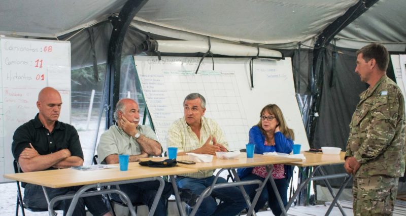 El gobernador Gerardo Morales, junto a los ministros de Salud, Mario Fiad; de Seguridad, Ekel Meyer; de Desarrollo Humano, Ada Galfré y de Infraestructura, Jorge Rizzotti, participó de las reuniones del Comité Operativo de Emergencia (COE) el pasado fin de semana, con motivo de analizar la implementación de viviendas transitorias para los vecinos afectados, para luego proceder a la etapa de reparación y reconstrucción de la localidad de Volcán.