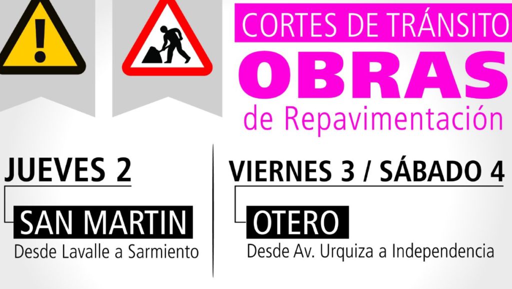– Viernes 3 y sábado 4 se verá interrumpido el tránsito vehicular y estará prohibido estacionar en calle Otero, desde Avenida Urquiza a Independencia.