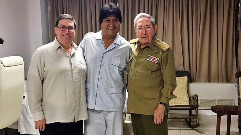 “Un encuentro fraterno entre dos grandes líderes del Abya Yala. El comandante Raúl Castro y el Canciller de Cuba conversaron 1/2 hora con Evo”, informó la ministra de Comunicación boliviana, Gisela López en su cuenta de Twitter junto con una foto en la que se ve a Morales en piyama saludando a Castro y a su canciller, Bruno Rodríguez.