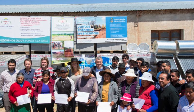 El Plan Hábitat financiará en Jujuy la construcción de 1861 baños y 327 dormitorios para familias de los departamentos de Santa Catalina, Susques, Rinconada, Yavi y Cochinoca. Además de los materiales para las obras los beneficiarios recibirán un termo tanque solar.