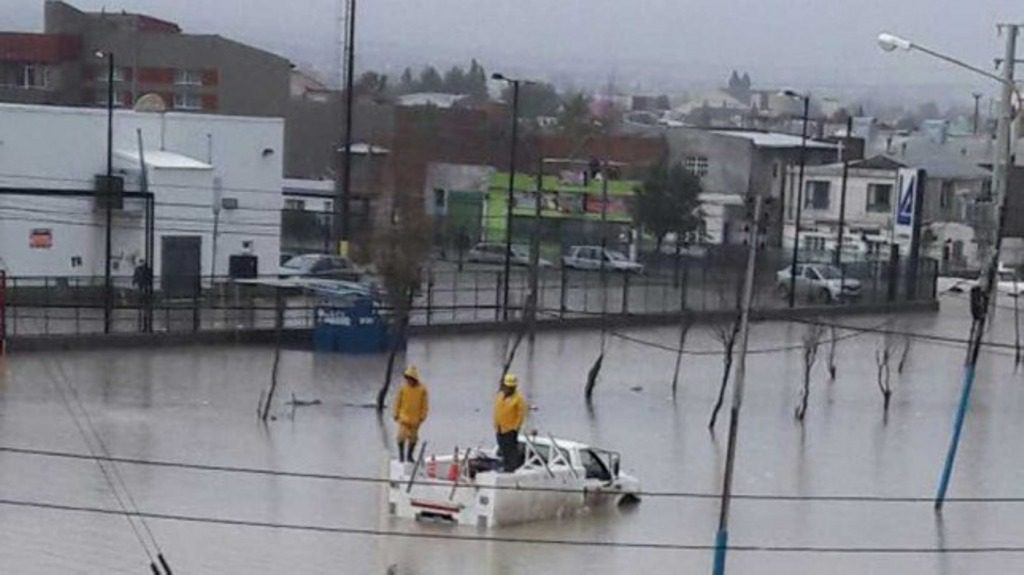 Pese a que la torrencial lluvia que azotó Comodoro Rivadavia redujo su intensidad, el agua que baja con barro del Cerro Chenque por las calles hacia el mar ocasiona todavía daños en viviendas, roturas de caños de agua y gas, caída de postes y anegamientos de barrios, con evacuados en 26 centros tras “286 milímetros” de agua caída, afirmó hoy el intendente, Carlos Linares.