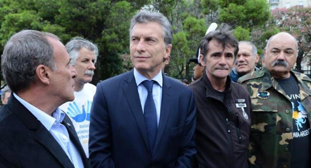 El presidente Mauricio Macri recibió hoy a veteranos de la guerra de Malvinas y a familiares de ex combatientes durante un encuentro celebrado en la residencia de Olivos que también contó con la participación de la gobernadora de Buenos Aires, María Eugenia Vidal.