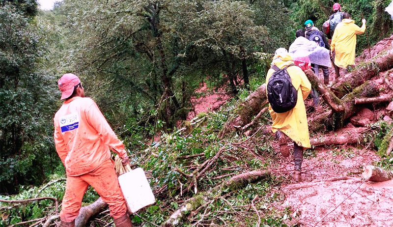 Personal de la Secretaría de Asistencia Directa y Calidad de Vida del Ministerio de Desarrollo Humano, continúa con los trabajos de asistencia para evitar un potencial desabastecimiento de mercaderías y otros elementos a familias afectadas por las inclemencias climáticas en la región de las Yungas, que produjeron cortes en la ruta del departamento Valle Grande.