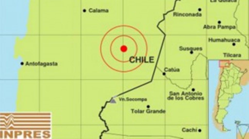 El temblor, ocurrido a las 5.19 de Argentina, tuvo su epicentro a 67 kilómetros al sureste de localidad de San Pedro de Atacama, a 291 km al oeste de San Salvador de Jujuy y 309 km al noroeste de Salta, indicó el Inpres en su página web.
