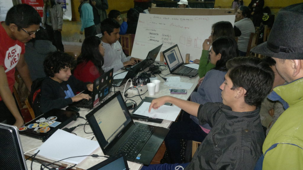 Promediando la tarde, entre api, anchi, bollo casero y pasta frola, se desarrollaron numerosos talleres en el marco de la Biblioteca Popular de Tilcara “Bartolomé Mitre”. Se armaron mesones según la temática de cada uno, en donde curiosos y conocedores compartieron conocimientos relacionados a la robótica, programación mobile, radio libre, y por supuesto, la instal fest, en donde los participantes pudieron llevarse instalada una de las nuevas distribuciones de Linux.