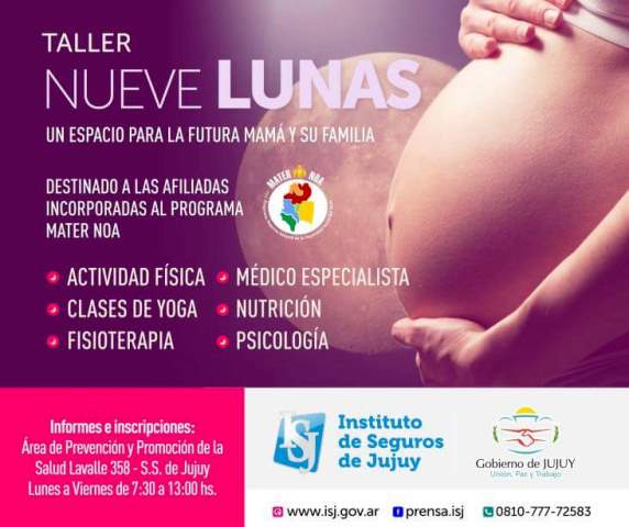 Este jueves, el Instituto de Seguros de Jujuy (ISJ) realizará en la sede de la delegación San Pedrito -desde las 19-, el dictado del taller “9 Lunas” destinado a futuras mamás afiliadas.