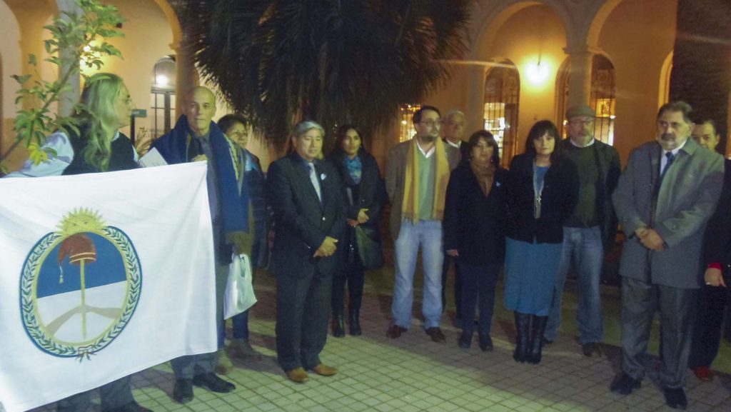 Ediles capitalinos, encabezados por el presidente del Concejo Deliberante, Lisandro Aguiar, participaron el miércoles por la noche de la Marcha de Historiadores, para hacer entrega de la Bandera Nacional de la Libertad Civil al Intendente Raúl Jorge.