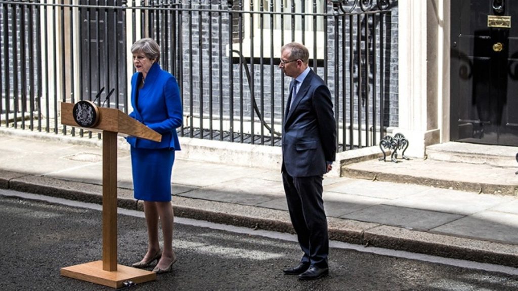 Con rostro adusto, May dijo que su Partido Conservador y el Partido Unionista Democrático (DUP) formarán un nuevo gobierno “que puede dar certidumbre y conducir a Gran Bretaña en esta hora crítica”.