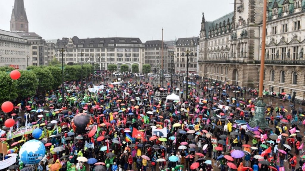 Pese a la lluvia intermitente, una larga columna de manifestantes -los organizadores calcularon 18.000, la Policía 8000- inundó las calles del centro de Hamburgo para formar una “ola de protesta”, copar la plaza central e inaugurar lo que será una semana llena de protestas en contra de la cumbre del G20 y las políticas de las potencias que participarán de ella.
