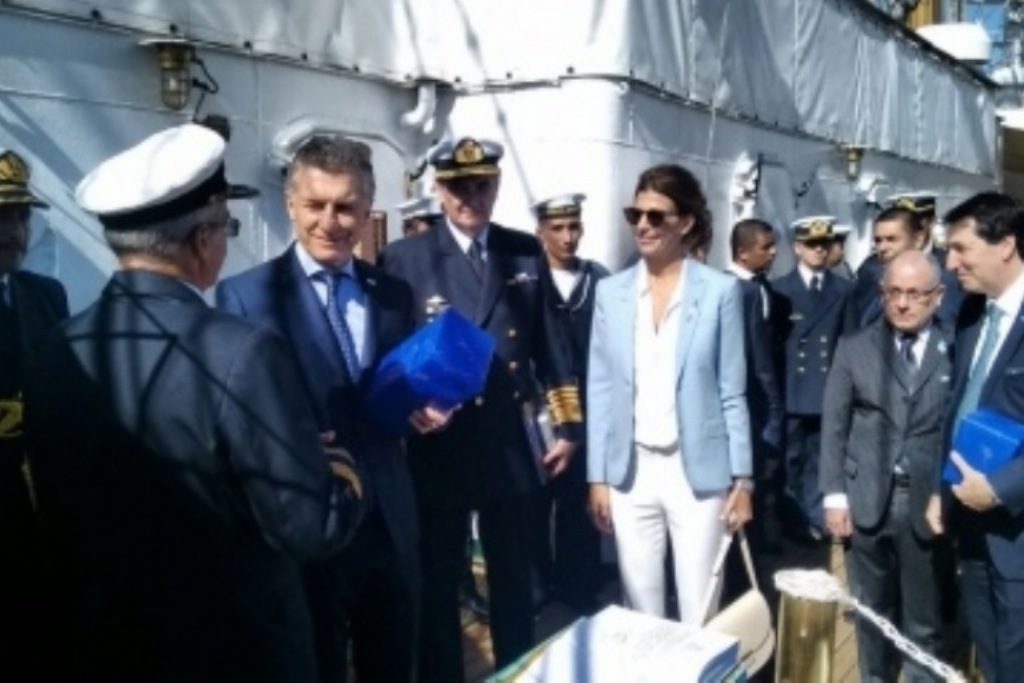 Macri agradeció a la tripulación del buque escuela, que desde el 22 de junio pasado está recorriendo puertos europeos en el marco de su viaje anual de instrucción, “por habernos traído este pedacito de la Argentina en un día tan importante”.