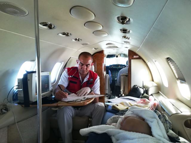 “Se efectúa el vuelo en el avión “Learjet 31 A” de primer nivel y se coordina la recepción en Buenos Aires con gestión del Ministerio de Salud donde nos espera con una ambulancia contratada de la empresa Emerger y los derivan a Garrahan”, expresó Pablo Jure.