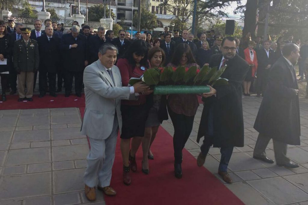 También en el acto el Gobierno, Municipio y el Concejo Deliberante hicieron entrega de ofrendas florales para el héroe del Éxodo el general Manuel Belgrano. Seguidamente para recordar a los hombres y mujeres que fueron parte de la epopeya, realizaron un minuto de silencio. Por último entregaron una Bandera Nacional de la Libertad Civil a directivos de la Escuela Técnica Nº1 “Escolástico Zegada” por el cumplimiento de sus cien años.