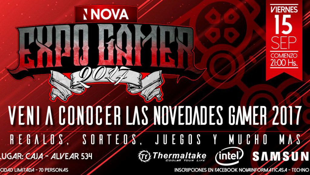 Thermaltake, Samsung e Intel, presentarán este viernes numerosos productos de la industria informática direccionada al público “gamer” en la “Expo Gamer 2017”, organizada por la empresa jujeña Nova Informática, en el Centro de Arte Joven Andino (CAJA) en la capital jujeña. La entrada es gratuita, pero al ser limitada hasta 70 personas, la inscripción se debe realizar a través de la página de Facebook del programa de radio y TV, “Tecno Geek” (@radiotecnogeek)