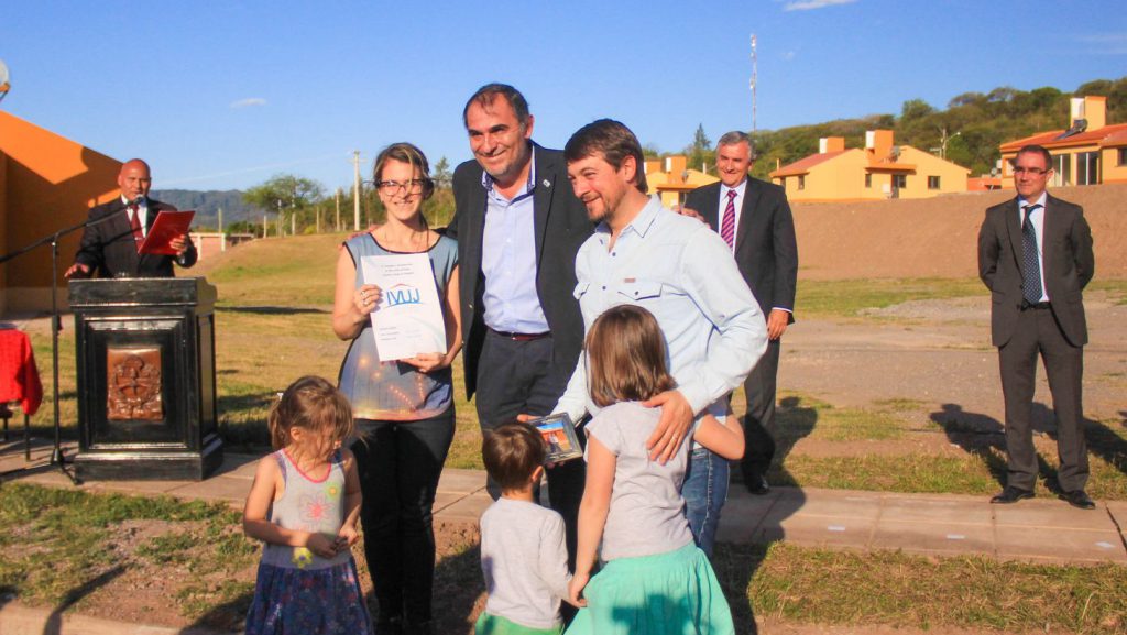 Ubicado, en medio del verde paisaje de la localidad ubicada en las afueras de la zona urbana de la capital jujeña, se hizo entrega de una foto conmemorativa y de la escritura de las casas a cada uno de los propietarios de las viviendas.