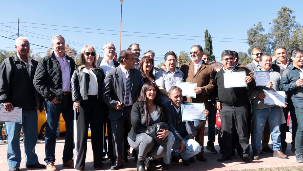 En la Pista de la Salud, se llevó a cabo la entrega de microcréditos que permite a los beneficiarios de las nuevas licencias de taxis obtener las unidades 0 km, mediante el instrumento surgido del trabajo en conjunto entre la Municipalidad de la ciudad, el Concejo Deliberante, y el gobierno de la provincia a través del Ministerio de la Producción.