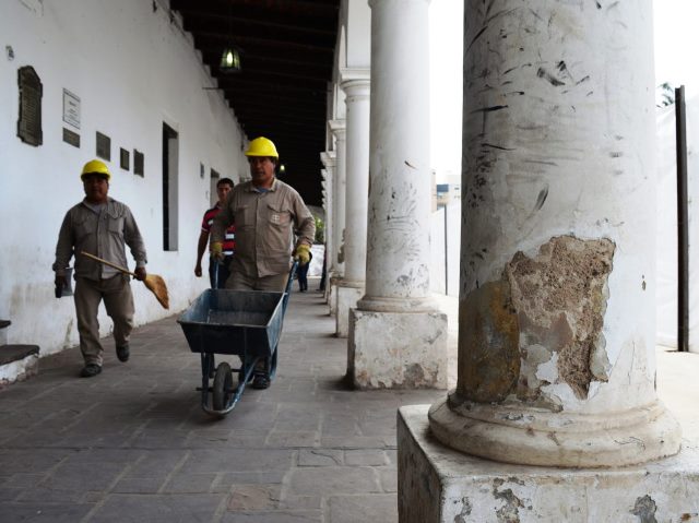 Para las tareas de puesta en valor y conservación de la fachada del Cabildo de Jujuy se aunaron tareas de la Dirección General de Arquitectura (DGA), integrante de la Secretaría de Planificación del Ministerio de Infraestructura, la Dirección Provincial de Patrimonio, perteneciente al Ministerio de Cultura y Turismo, y también áreas de patrimonio histórico de Nación.